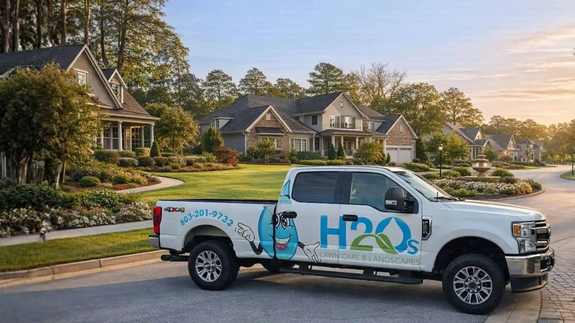 Lush green lawn with well-maintained grass and landscaping by H2Os' Lawncare and Landscapes.